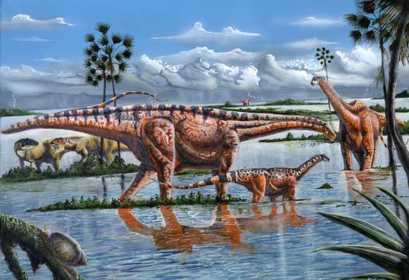 Os grandalhões eram herbívoros, ou seja, se alimentavam apenas de vegetais. Ambos viveram na Terra no período entre 80 e 90 milhões de anos atrás. Nesta época, Peirópolis era uma parte bem quente do nosso planeta, com pouca vegetação. Havia lá rios e lagos onde os animais iam beber água, com seus pescoços compridos.